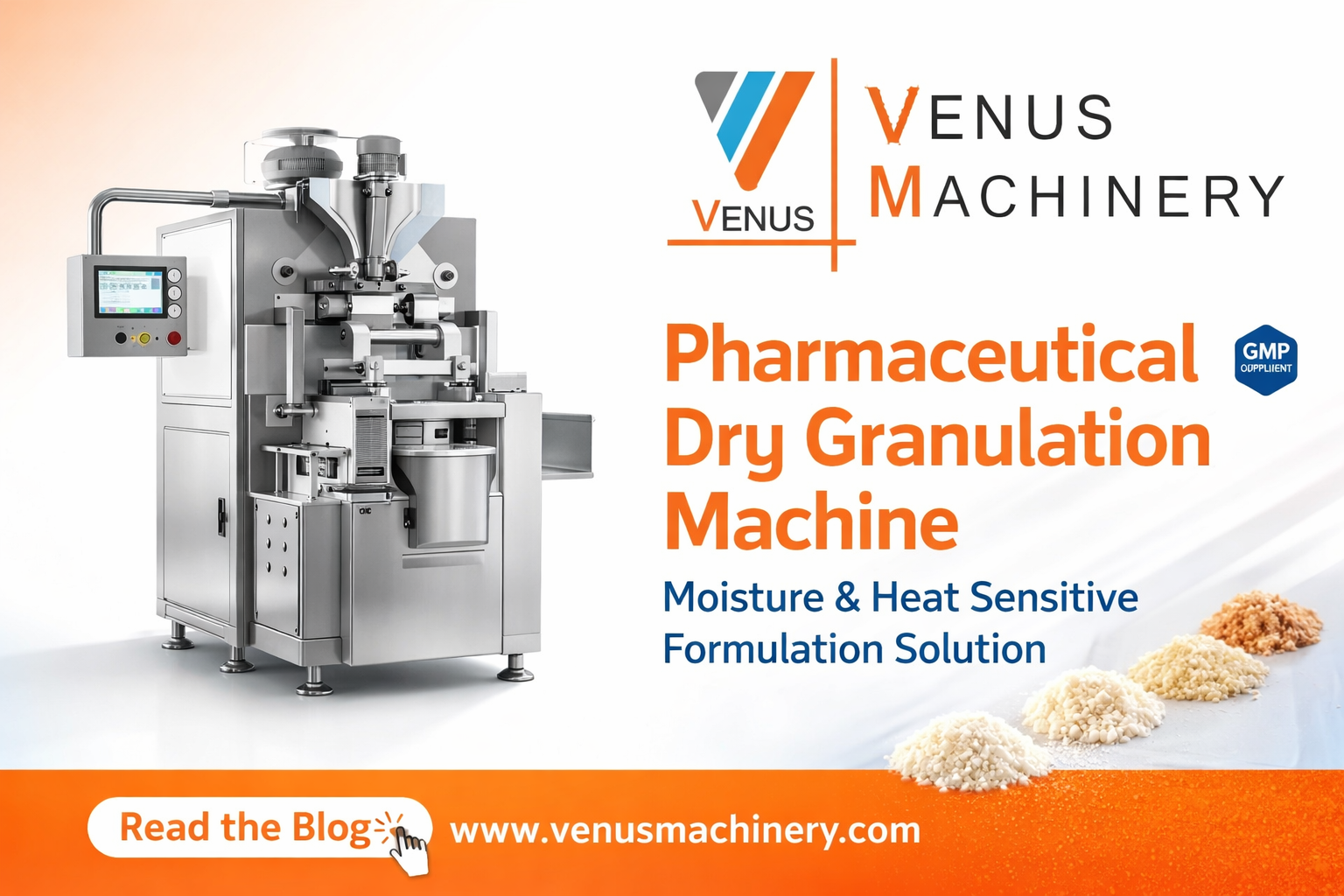 The pharmaceutical industry demands precision, sterility, and regulatory compliance at every stage of production. The Pharmaceutical Dry Granulation Machine plays a vital role in producing uniform, compressible granules without the use of liquid binders, making it especially suitable for moisture-sensitive and heat-sensitive formulations. Venus Machinery, Ahmedabad, with over 22 years of experience in pharmaceutical machinery manufacturing, offers GMP- and cGMP-compliant dry granulation systems engineered for performance, durability, and regulatory reliability.